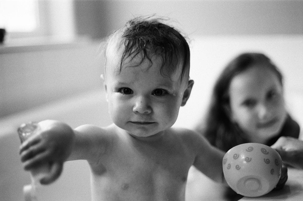 Here are a few of my first shots on 35mm B&W at 400 ISO. The old Pentax still has an eye for capturing some of my favorite family moments. The only difference this time is that I am the one behind the lens.