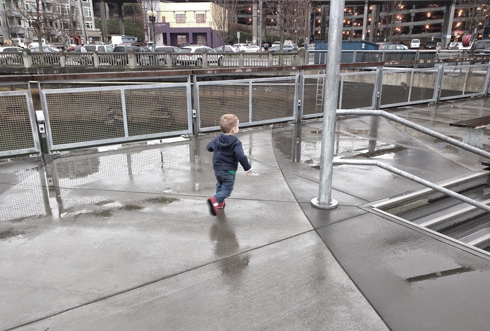 I let my son run because it is good for him. He needs to explore, to have adventure, and to get lost every once in a while. Why? Because explores find things, adventures breed courage, and the lost learn how to find their way back. Consider how you let your kids run; it could be good for you both. Check out this photo of my son running. We were watching the seals at the Seattle Aquarium last weekend. I grabbed my phone and said the code phrase for "run away." What is that code phrase? It's this: "let me take a picture." With those five words my two year old instantly goes into escape mode. Bria and I usually chase him, correct his behavior, and proceed with photographia. But this time I let him run.