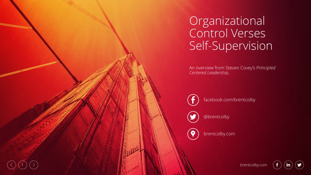 Check out this overview from Steven Covey's Principled Centered Leadership. I discuss the tension, and resolution, between the control of an organization and the necessity for independent decision making. Watch the video.