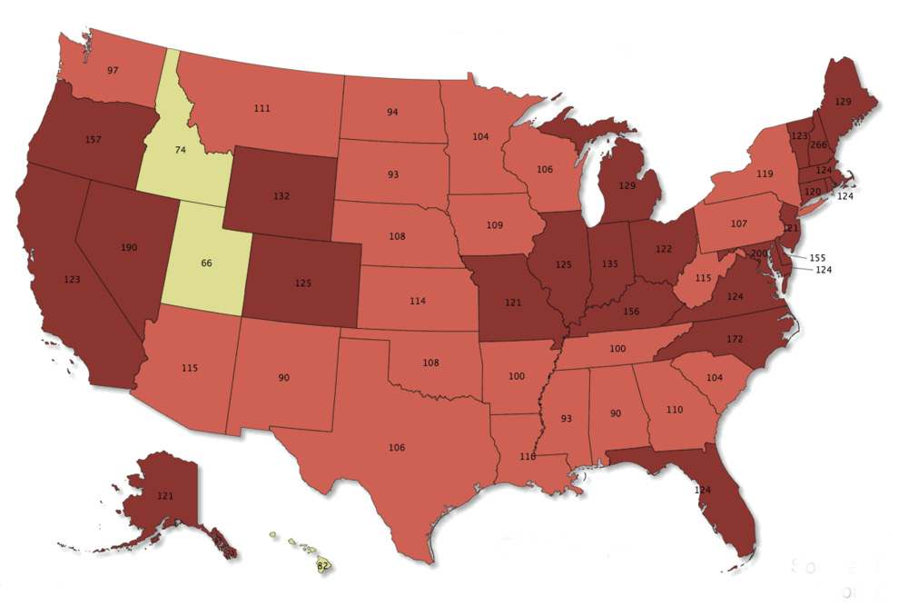 Metric Maps is a group who specializes in the visualization of health data. You can follow them on Tiwtter @MetricMaps and see a variety of mind boggling statistics. A recent post show 40 years of cigarette sales per capita. It is no surprise that smoking is less common today but it is amazing to see the drastic reduction state by state.